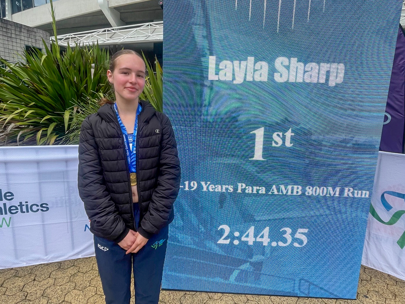 Layla Sharp, a Year 11 student at Emmaus Catholic College Kemps Creek, continues to build on her reputation as a future Paralympian, achieving a remarkable feat by winning gold in the 800m, silver in the 200m, and bronze in the 100m at the meet(17-19 Years Para AMG - T/F38).